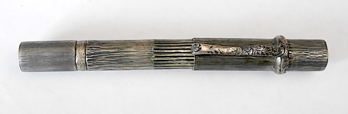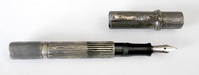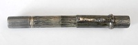 This pen was built, probably in the 1990s, by the notorious Nathan Tardiff. It is constructed on an early Pelikan 100N chassis and sat on my workbench for years until I found the right barrel. First year 100N barrels are narrower than they would be later and the overlay won't fit the later ones.